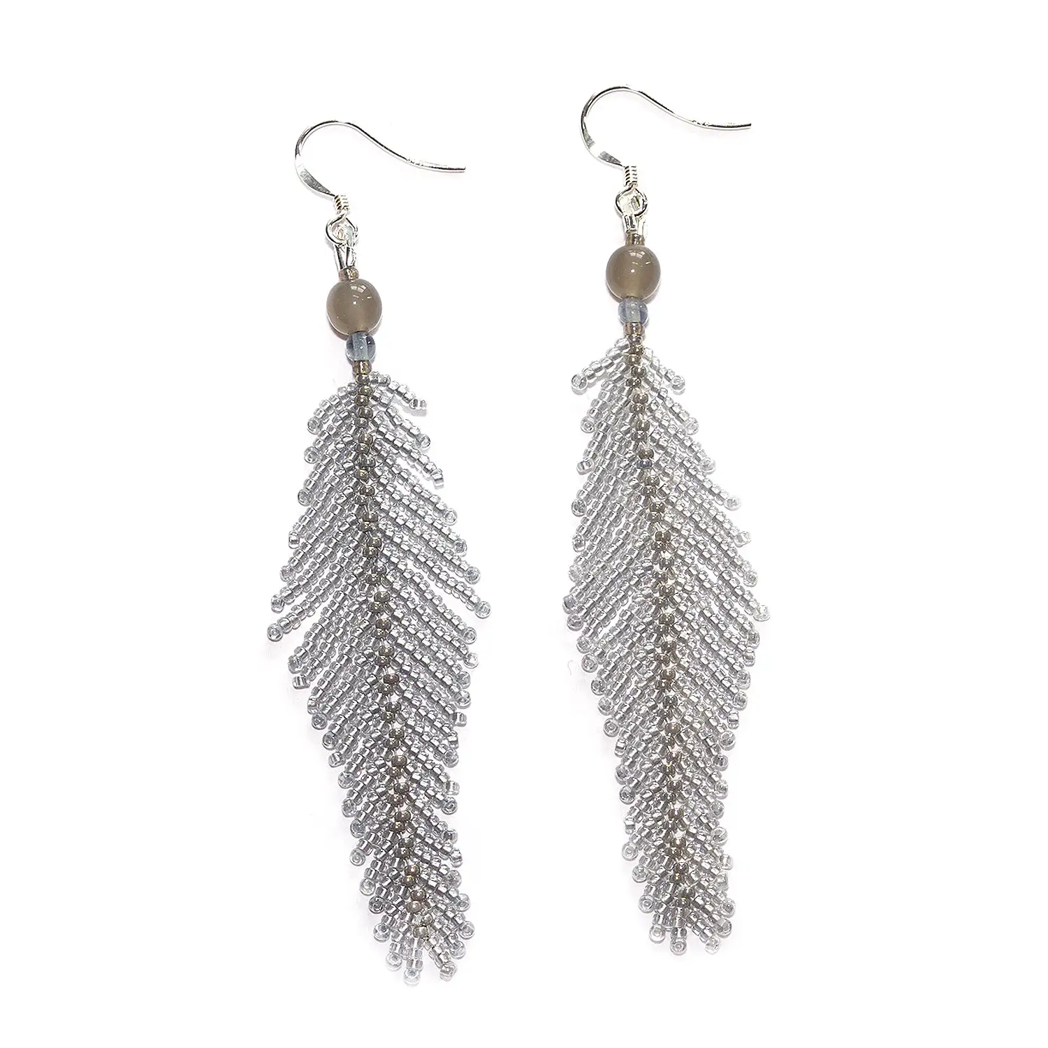 Federohrringe – lang – silbergrau