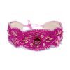 Goldener Bead-Embroidery Ring mit feinen Glasrocailles die einen farbigen Glascabochon umrahmen. In seiner Schlichtheit eine feine Fingerzierde.